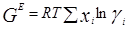 Избыточная энергия Гиббса, соответствующая этим уравнениям, составляет