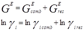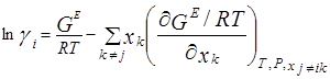 Коэффициенты активности получают из избыточных энергий Гиббса, однако на практике используют обратную процедуру: GE определяют из коэффициентов активности. Ниже приведены основные уравнения: