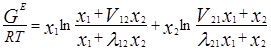 Другое достоинство модели Вильсона в приближенном учете влияния температуры на GE и γi. При Сij =const температурная зависимость передается через величины λij. Это облегчает описание парожидкостного равновесия в неизотермических условиях.