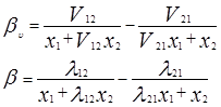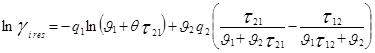 где Vij (=Vi /Vj ) – соотношения молярных объемов, и если эти соотношения равны единице, то получаем уравнение Вильсона. Уравнения для определения коэффициентов активности бинарных смесей соответственно принимают следующий вид [3]: