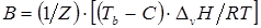 Константу “B” можно определить, если известно давление насыщенного пара вещества при какой-либо температуре. Так, для нормальной точки кипения имеем