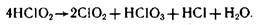 Хлорит натрия NaCIO2 реагирует с кислотой с образованием хлористой кислоты HClO2, которая разлагается с выделением диоксида хлора ClO2 и получением побочных продуктов – ионов хлората ClO3- и хлорида Cl. Состав продуктов зависит от температуры, рН и других факторов. При 60 °С происходит реакция