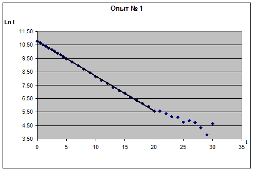 Рисунок № 1. График зависимости LnIn от t для Опыта № 1.