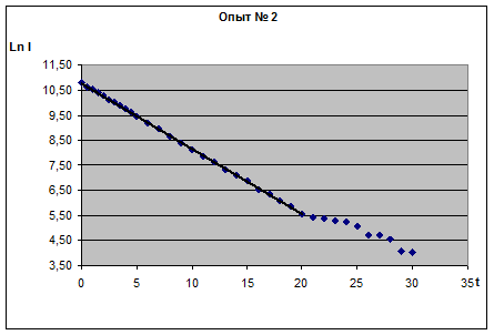 Рисунок № 2. График зависимости LnIn от t для Опыта № 2.