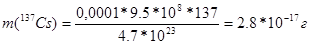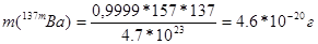 Можно предположить, что A (137m Ва) =99,99%, а A (137 Cs) =0,01%, тогда воспользуемся формулой связи массы радионуклида с его активностью.