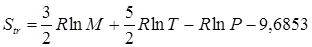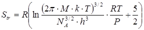 — число Авогадро; h – постоянная Планка. Подставив в это уравнение значения констант k, h, NA, при стандартном состоянии P = 1 атм = 101325 Па, получим формулу, удобную для практических расчетов энтропии поступательного движения: