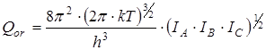 — моменты инерции молекулы (здесь n – число атомов в молекуле; mi – масса i-того атома; xi, yi, zi – координаты i-того атома в системе координат с центром, находящемся в центре инерции молекулы). Отсюда