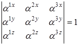 Затем находятся направляющие косинусы осей x, y, z относительно главных центральных осей 1, 2, 3 инерции молекулы. Направление осей выбирается таким образом, чтобы обе системы координат были или правыми, или левыми. При этом должно соблюдаться условие равенства единице определителя матрицы направляющих косинусов, т.е.
