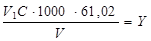 де V1 — об'єм розчину соляної кислоти, витрачений на титрування, см3; С — концентрація розчину соляної кислоти, витраченої на титрування, моль-екв/дм3; V— об'єм проби води, см3; 61.02 — молярна маса еквівалента гідрокарбонат-іонів.