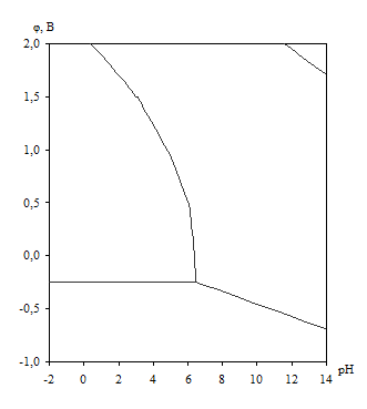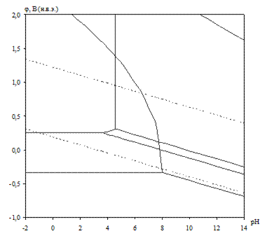 Рис. 2.7. Диаграмма рН – потенциал системы сплав МНЖМц30–1–1 – Н2 О при 25о С,