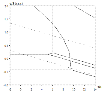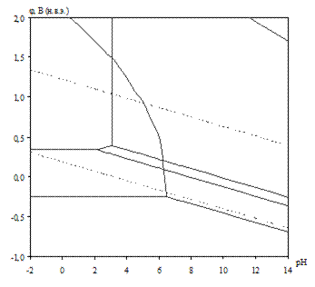Линии a и b на диаграммах (рис. 2.2 – 2.7) определяют электрохимическое поведение воды (см. табл. 2.14).