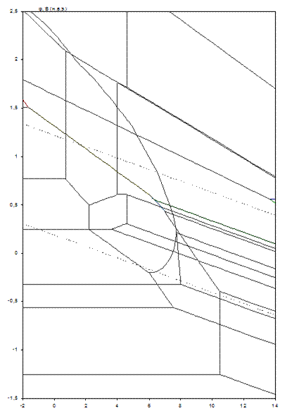 На диаграмме можно выделить 48 областей преобладания различных фаз:
