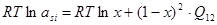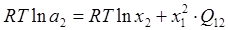 — соответственно теплота и избыточная энтропия смешения компонентов. Выражения (1.2) и (1.3), очевидно, можно рассматривать как частные случаи неизвестной функции для концентрационной и температурной зависимостей энергии смешения компонентов, получаемой путем разложения