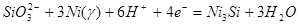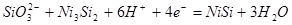 Силицид Ni2 Si реагирует с фтором при комнатной температуре с воспламенением, с хлором — при 600-7000С. Газообразные HF, HCl, HBr и HI разлагают его с образованием галогенидов никеля и кремния. Пары воды разлагают Ni2 Si в тех же условиях. Плавиковая кислота растворяет его очень легко, а остальные кислоты — труднее. В смеси HCl и HNO3 силицид Ni2 Si растворяется полностью. Водные растворы щелочей не взаимодействуют с ним, расплавленные щелочи разлагают с образованием растворимых силикатов щелочей и осадка окислов никеля, аналогично действуют на него смеси H2 CO3 и KNO3, но при более низких температурах.