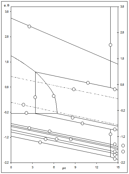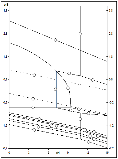 на диаграммах (рис.2.3-2.5) определяют электрохимическое поведение воды (см. табл.2.5). В области ниже линии