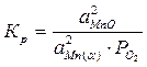 Равновесие MnO с альфа-фазой является моновариантным, поэтому давление кислорода в газовой фазе, равновесной с конденсированной фазой, будет зависеть от активности марганца в альфа-фазе. Однозначно определить его можно, например, для точки, соответствующей предельной растворимости кремния в марганце. В этой точке мольная доля кремния