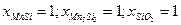 Mn0,85Si0,15 – Mn2SiO4 – MnO | 40Mn0,85Si0,15 + 23O2 = 6Mn2SiO4 + 22MnO |