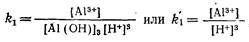 Таким образом, растворимость А1(ОН)3 в кислой среде, прямо пропорциональна концентрации водородных ионов в третьей степени [Н+]3, а в щелочной — обратно пропорциональна [Н+].