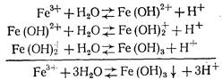 Гидролиз FeCI3 протекает в три стадии: