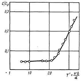 Из уравнения (12.14) можно заключить, что при С/С0= =constмежду критериями X и Т должна существовать однозначная зависимость. Экспериментальные данные показывают, что такая зависимость действительно существует и выражается прямой линией