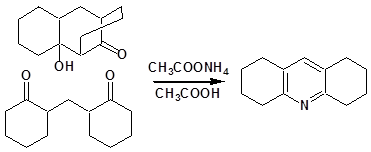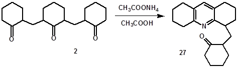 Традиционным химическим способом установления структуры 1,5-дикетонов является циклизация их в производные пиридина. Циклизация по Чичибабину состоит во взаимодействии 1,5-дикетонов с уксуснокислым аммонием в уксусной кислоте [26]. В эту реакцию вступают арилалифатические, алициклические, симметричные и нессиметричные дикетоны. В случае бициклических 1,5-дикетонов в реакции образуются октагидроакридины. Продукты их внутримолекулярной циклокетолизации — b-кетолы [24, 26] образуют те же азотистые основания:
