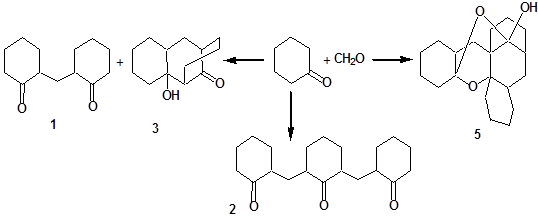 Конденсация циклогексанона с формальдегидом в соотношении 2-3:1.