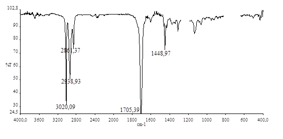 В ИК спектре (рис. 5) содержится полоса поглощения карбонильной группы при 1715 см-1.