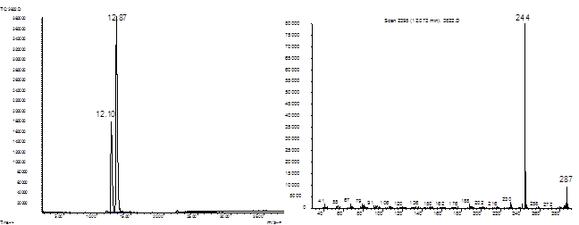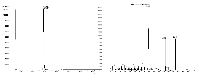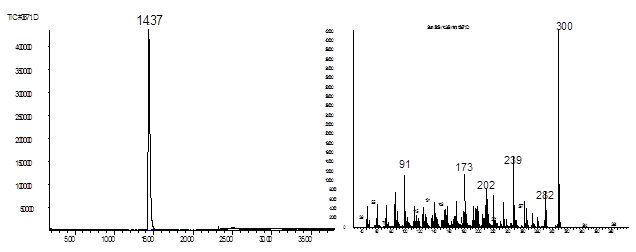 Данные ГЖХ-МС: в.у. 14.37; m/z(Iотн.,%): 300 (100) [М]+, 288 (20), 239 (37), 173 (25), 91 (24). Вычислено М 300.