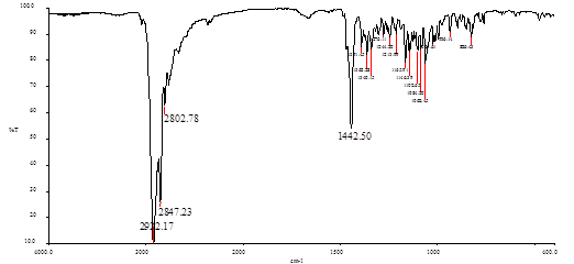 Спектр ЯМР 13С (С6D6, d, м.д.): 83.99 (С4), 78.73 (С12), 58.94 (С2), 41.44, 35.79 и 30.88 (С1, С9, С17), 32.61 (С11), 35.10, 34.53, 31.26, 31.06, 30.73, 30.61, 30,14, 29.60, 28.70, 26.16, 25.06, 22.44, 21.03 (13 СН2).