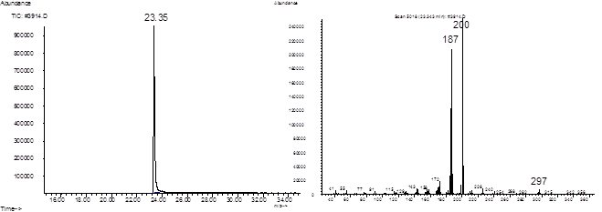 Данные ГЖХ-МС: в.у. 23.35; m/z(Iотн.,%): 297 (3) [М+], 200 (100), 187 (81), М 297.