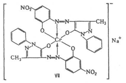 Они представлены 1-амино-4-гидроксиантрахиноном и его замещенными, которые содержат в положении 2, например, атом Вr, группы ОСН3 или ОС6 Н5 и дают розовые и красные окраски; 1,4-диаминоантрахиноном и его производными, содержащими N-алкильные (или арильные), N, N-диалкильные, 5-нитро-, 2,3-дихлор- или 2-алкоксигруппы и обеспечивающими гамму цветов от красно-фиолетовых до сине-зеленых; синими красителями на основе 1,4,5,8-тетразамещенных антрахинона, содержащих группы ОН, NO2, NH2 или NHR (R – алкил, арил). Так как индивидуальные зеленые, коричневые, серые и черные дисперсные красители отсутствуют, для получения окрасок указанных цветов готовят смесовые композиции. Наиболее практическое значение имеют дисперсные красители для полиэфирного волокна. Поскольку в процессах крашения и отделки это волокно подвергается высокотемпературным обработкам, к окраскам дисперсных красителей предъявляется требование высокой устойчивости не только к свету, но и к сублимации. Светостойкость окрасок повышается при введении в молекулу дисперсного красителя электроноакцепторных заместителей, снижающих основность атома N в аминогруппе, а устойчивость к сублимации – при увеличении размера и полярности молекулы. В случае моноазокрасителей повышение устойчивости окрасок достигается введением в остаток диазосоставляющей в ортоположение к азогруппе Cl, Br, CN, в пара-положение – NO2, в параположение остатка азосоставляющей – N, N-диацетоксиэтиламино-, N-этил-N-цианоэтиламино-, N-цианоэтил-N-ацетоксиэтиламиногрупп; в ряду антрахиноновых красителей вводят, например, атомы галогена. Светостойкость окрасок зависит также от химической природы и физических свойств волокна. Окраски многих дисперсных красителей на полиамидном волокне менее светостойки, чем на ацетатном и полиэфирном. В особые группы выделяют металлсодержащие и активные дисперсные красители, предназначенные для прочного окрашивания полиамидных волокон. Металлсодержащие дисперсные красители – металлкомплeксные соединения, содержащие один атом Сr или Со на две молекулы моноазокрасителя, например, дисперсный красный СМП (VII, М – металлсодержащий, П – для полиамидных волокон).
