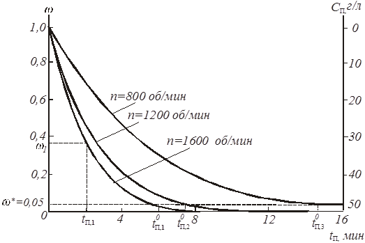 при температуре Т, концентрации С и числе оборотов n в случае, когда