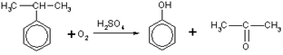 2. При каталитическом окислении изопропилбензола (кумола) кислородом воздуха образуются фенол и ацетон: