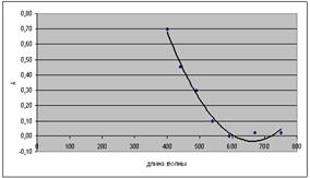 Светофильтр выбираем тот, который даёт максимальное значение абсорбционности. По графику видно, что дальнейшие измерения будем проводить на длине волны 400 нм.