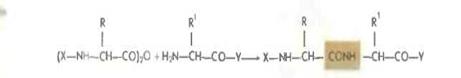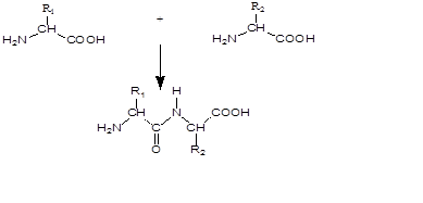 Образование пептидной связи в общем сводится к отщеплениюэлементов воды.