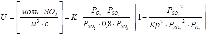 В Р.И.В. Проводят окисление SO 2. Объем реакционной зоны 150 м2. Объемный расход смеси 50000 м3/г. Состав исходной смеси SO 2 – 0,1; O 2 – 0,11; SO 3 – 0,01; остальное – азот. Давление в реакторе Р=1,5 атм .