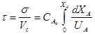 Уравнение (*) представляет собой характеристическое уравнение Р.И.В. Оно позволяет, если известна кинетика процесса, определить время пребывания реагентов, а затем и размеры реактора при заданных расходе реагентов и степени превращения или производительности реактора или при заданных размерах реактора и степени превращения.