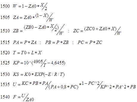 Программа для расчета, составляется в приложении REAC