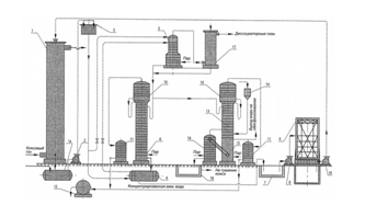 Отримувані при переробці надмірної надсмольної води аміачні пари подаються частково в абсорбер разом з коксовим газом, а частково в нейтралізатор піридинової установки, де аміак також зв'язується сірчаною кислотою. Таким чином увесь аміак прямого коксового газу зрештою переробляється в сульфат амонію.