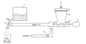 Циркулюючий розчин містить кристалічну фазу і на виході з труби 2 має залишкове пересичення, яке знижується або повністю знімається в результаті змішення з живлячим розчином. Після змішення розчин поступає в трубчатку нагрівача 1.
