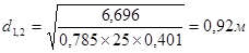 Dвн = 2,5 м — внутрішній діаметр колони;