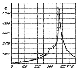 Наиболее важной особенностью сегнетоэлектриков является высокая и обратимая поляризация, которая наблюдается при температуре вблизи точки Кюри-Вейсса. При температуре ТK диэлектрическая проницаемость достигает максимума, а затем спадает в соответствии с законом Кюри-Вейсса.