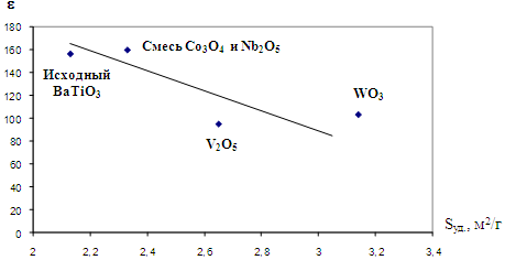 4.4 Влияние модифицирования на удельную поверхность BaTiO3