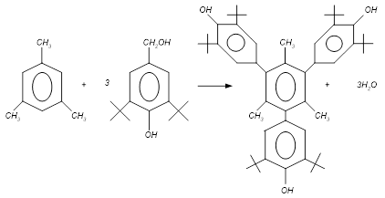 При взаимодействии мезитилена со спиртом получена реакционная масса следующего состава (% масс.): — мезитилен – 10,39, АО-40 – 62,25, м-ксилол – 2,23, тетраметилбензол – 14,15, исходный спирт – 7,98. Вычислить степень конверсии реагентов, селективность процесса по каждому из продуктов реакции в расчете на каждый реагент и выход на пропущенное сырье каждого из продуктов реакции в расчете на один реагент.