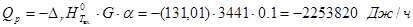 Теплота реакции определяется величиной энтальпии реакции, массового расхода реагента, степенью конверсии реагента.