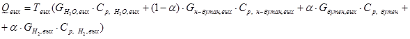 — определено для Твых из логарифмического полиномиального уравнения для Ср бутена с помощью функции «Поиск решения» программы «MicrosoftExcel»;