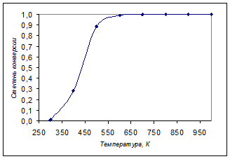 Как видно, для ведения процесса подходит температура в интервале от 600 до 800К.