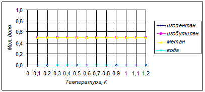 | Р, атм | изопентан | изобутилен | метан | вода |
