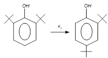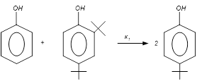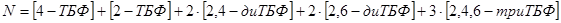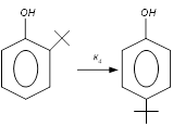 При исчерпывающем жидкофазном алкилировании фенола изобутиленом получена реакционная масса, состав которой определяется равновесием реакций позиционной изомеризации и переалкилирования в системе, представленной фенолом, 2-ТБФ, 1,4-диТБФ, 2,6-диТБФ, 2,4,6-триТБФ.