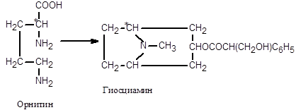 Орнитин, введенный в листья белены, включается в тропановое кольцо гиосциамина: